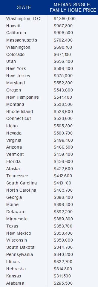 States With the Highest Median Home Prices